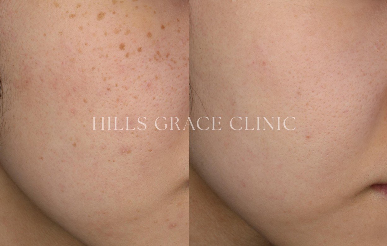 ヒルズフェイシャルはあらゆるタイプのシミ、アザ、色素沈着にも対応できるよう、肌状態に合わせたカスタマイズを行い、すべての工程を医師が行います。