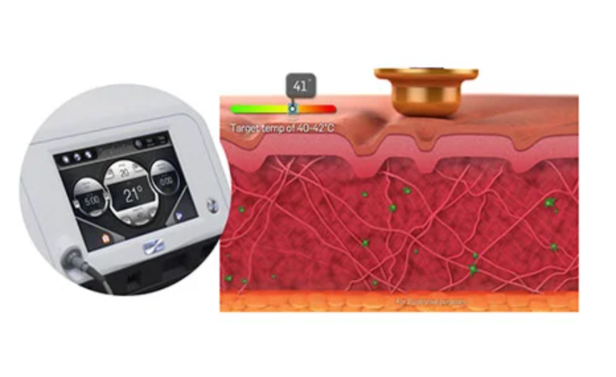 テンプシュアは、真皮の温度を「上がりすぎない」絶妙な範囲でゆっくりと加熱します。これにより、以下の2つのアプローチを同時に行います。